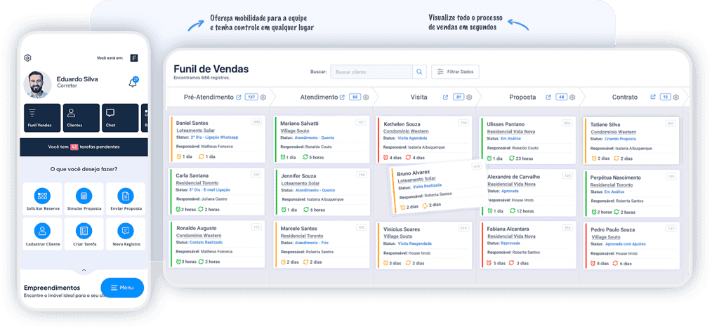 Emissão formal de propostas, simulação de financiamento, registro padronizado de negociação e reserva de unidades.